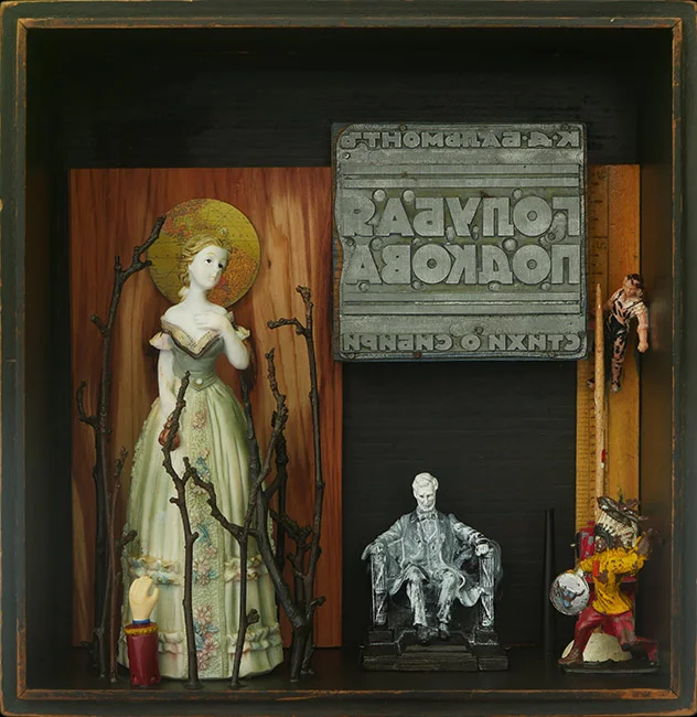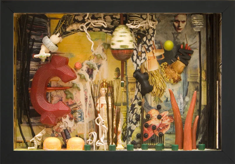 Some assemblage boxes have become almost static stage settings—objects are added to create an altered visceral, yet mysterious context. Some mixed media boxes even tell small, intimate stories. I view some of these pieces as collage in three dimensions as I work to develop the extent of this space into an abstract composition. I want these varied mixed media constructions to excite the curiosity of the viewer.